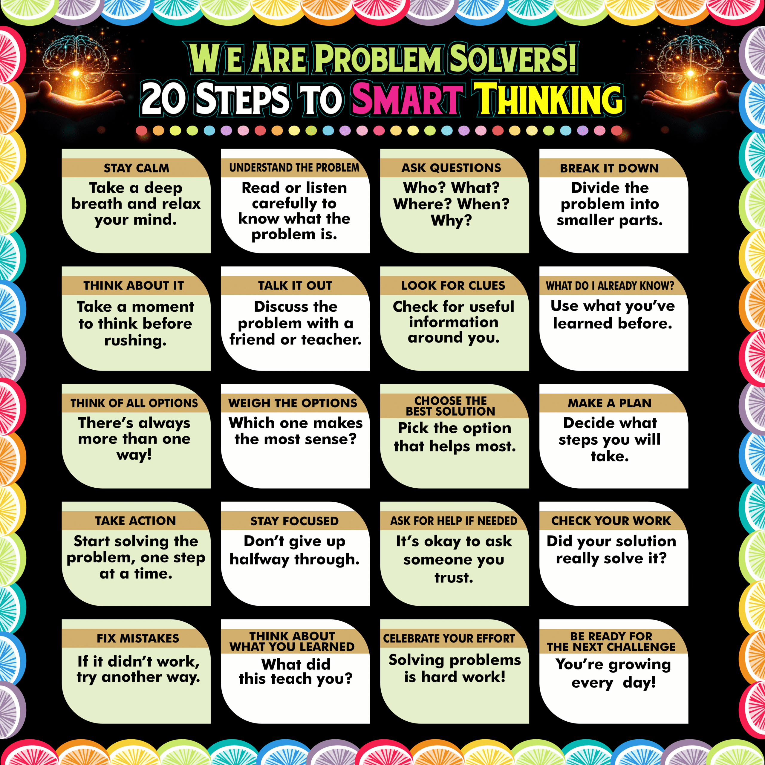 20 Steps to smart thinking colorful motivational quotes Indoor & Outdoor Durable Display Board – 4 by 4 ft Flex motivational banner