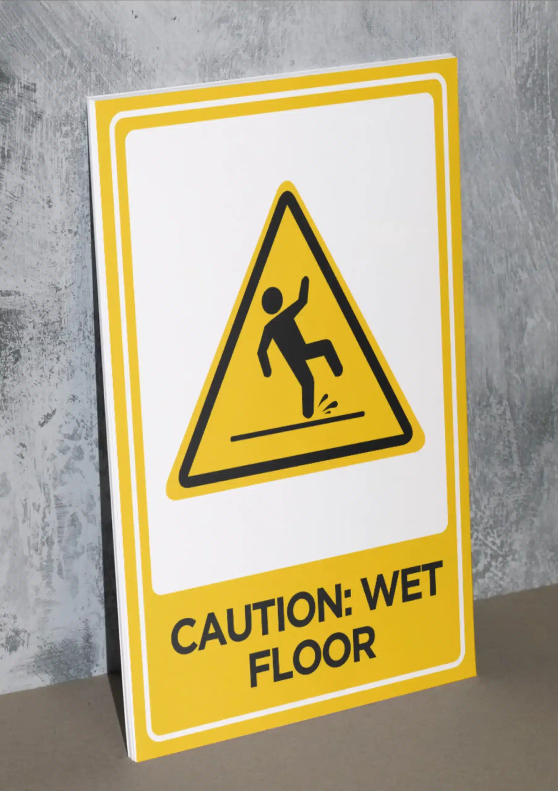 A safety sign warning of wet floors to prevent accidents. Vibrant, waterproof, and easy to install.