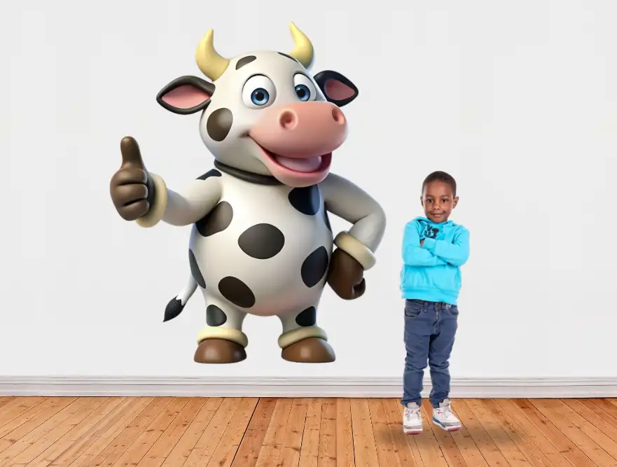 Cow standing and showing his thumb- Curiosity Sticker on paper (5.5 by 4feet)